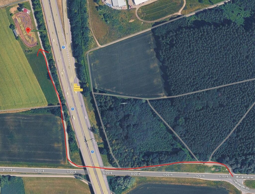 hinter der Unterführung rechts dem Kiesweg entlang der Autobahn A7 folgen
